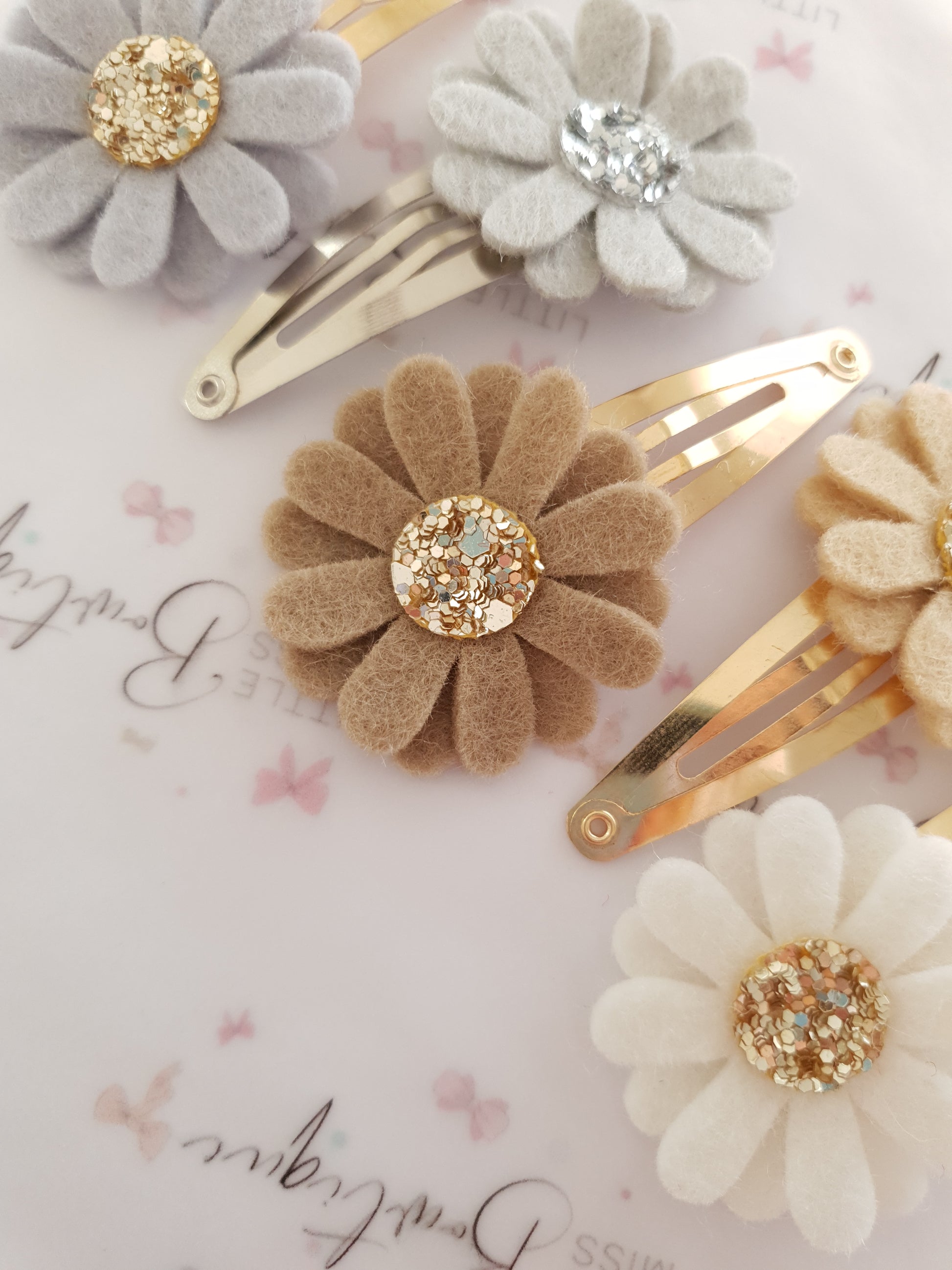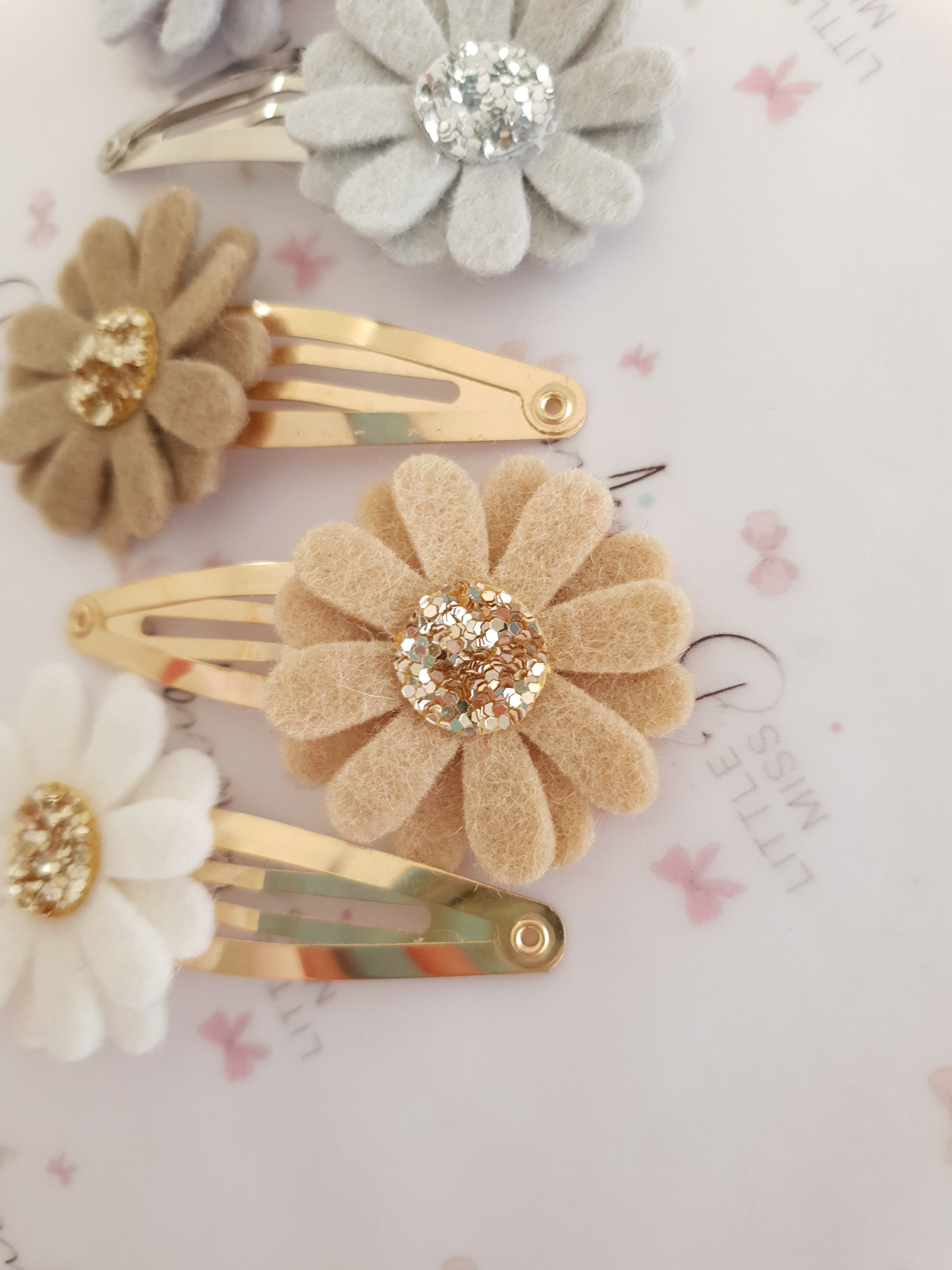 Neutral Daisy Snap Clips