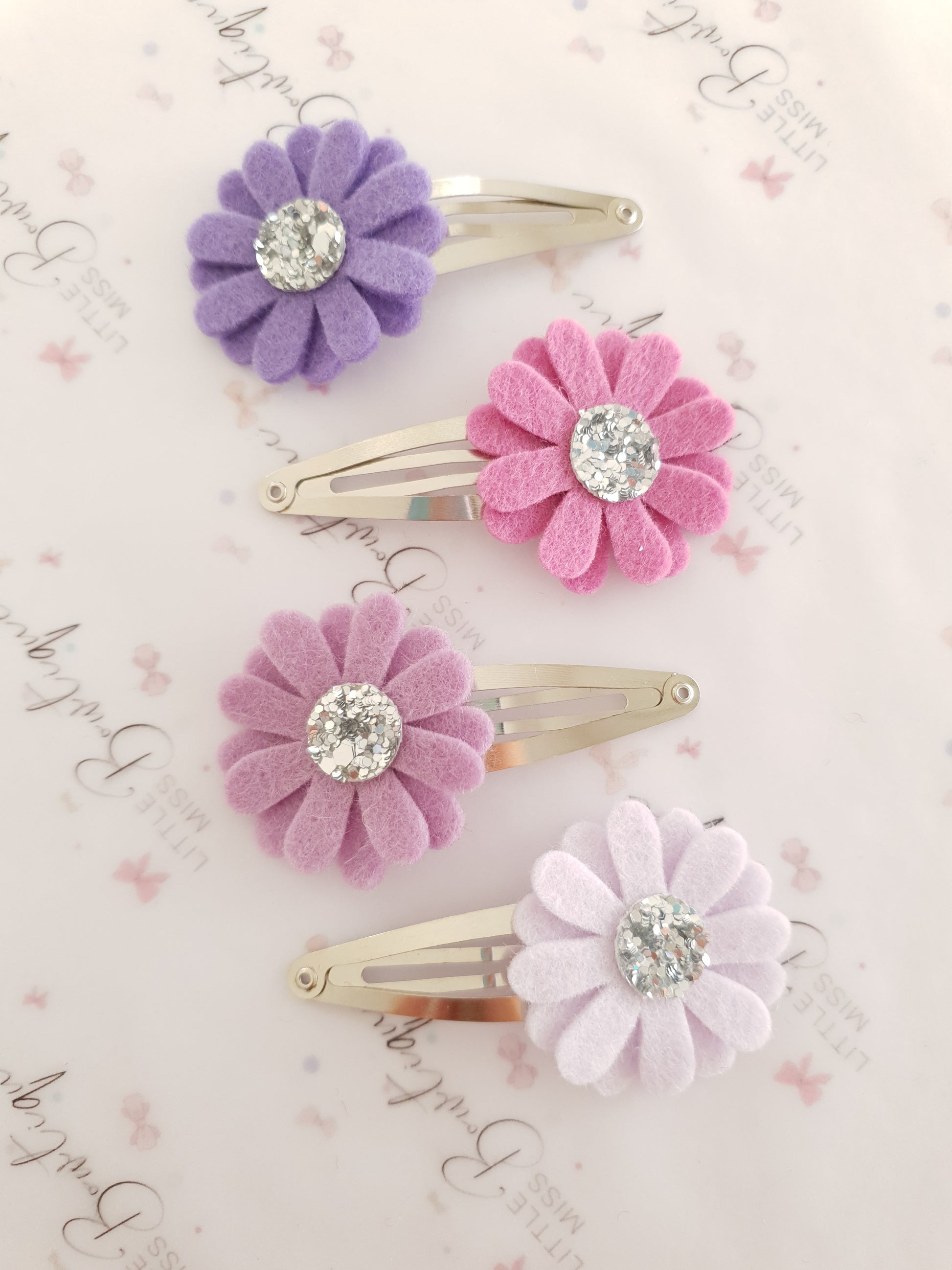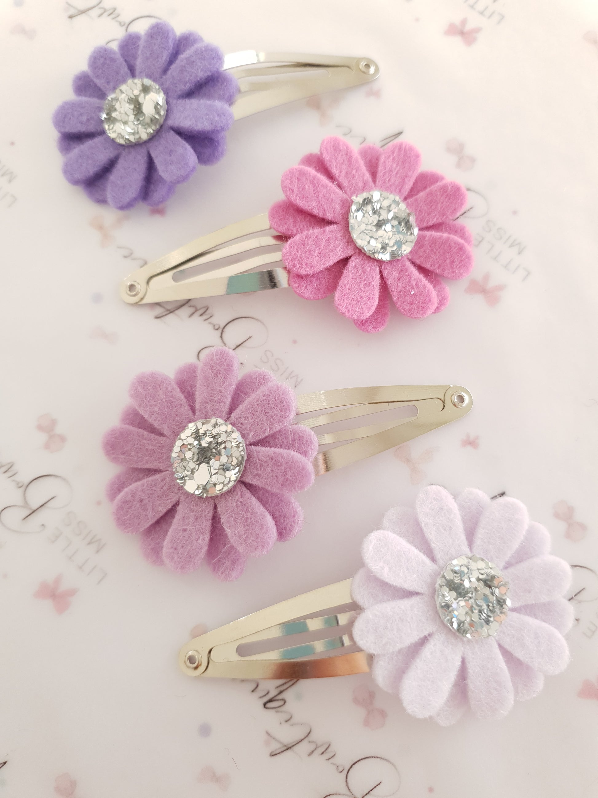 Material- 100% Merino wool felt and faux glitter centres.